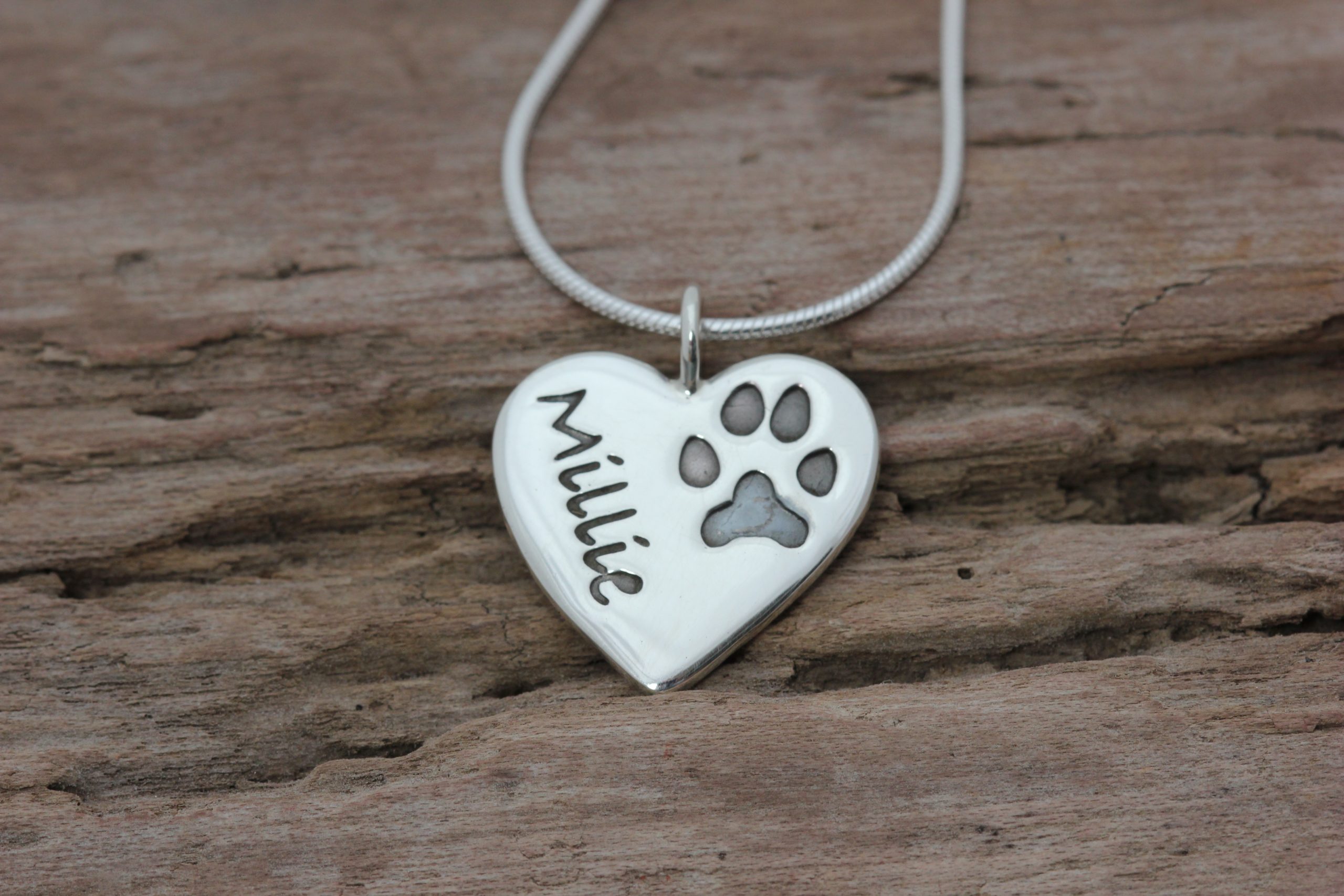 The most popular heart shaped pendant! Personalised with your pets very own paw print, taken with our special inkless kit. Available in large or small and available in a choice of chain styles and lengths, making it the perfect keepsake for any dog or cat lover.