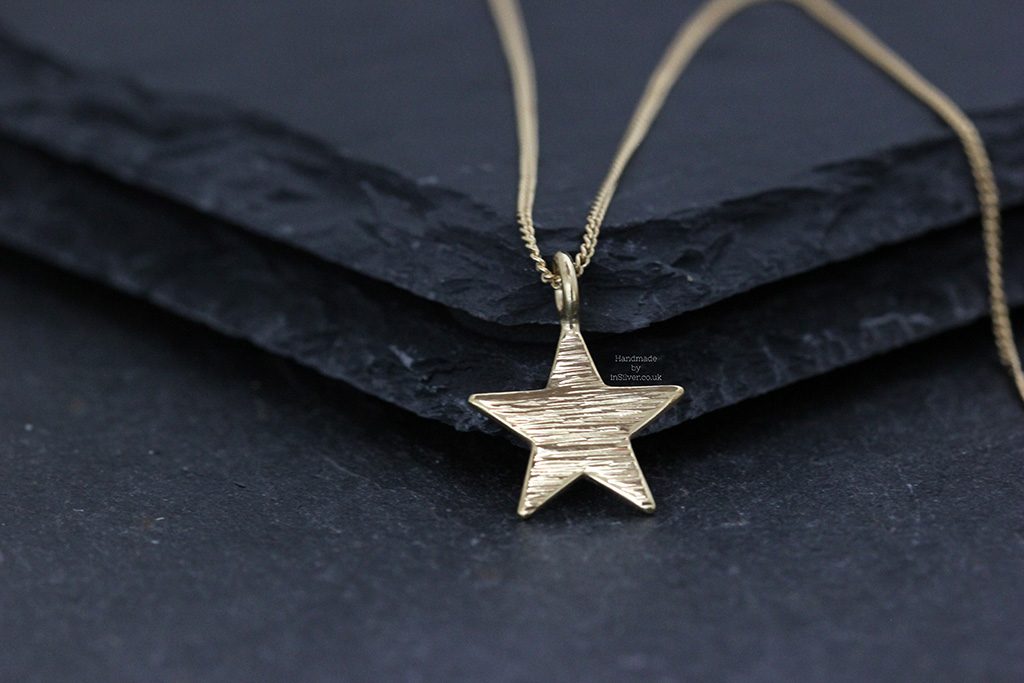 A reversible Star pendant, line hammered on one side and plain on the other, in warm 9ct gold vermeil. Also available in the glitter hammered finish.